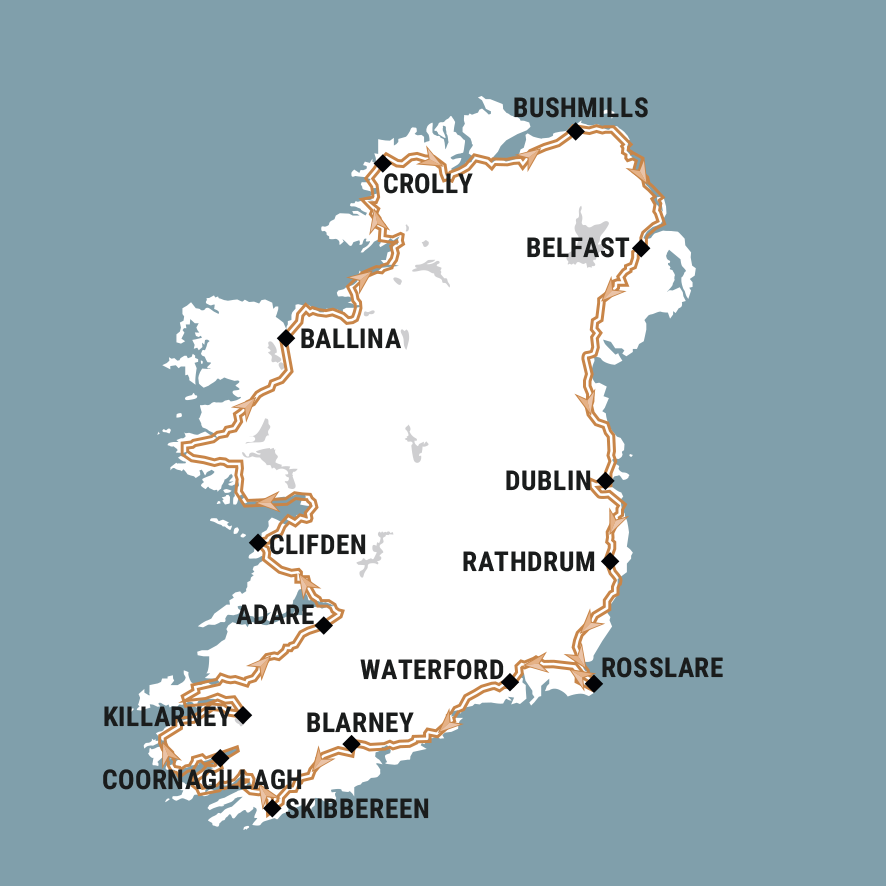 Voyage de 24 jours à la découverte des paysages emblématiques de l’Irlande et de l’Irlande du Nord, entre falaises, landes, montagnes et côtes sauvages. Exploration du Sud irlandais avec Waterford, Cork, Killarney, le Ring of Kerry et les falaises de Moher, puis découverte du Connemara et du Donegal. Immersion dans l’histoire et la culture locale à travers visites guidées, musées, distilleries et spectacles de musique traditionnelle. Découverte de l’Irlande du Nord avec Derry, la Chaussée des Géants et Belfast, avant de rejoindre Dublin et les Monts Wicklow. Temps libres pour balades, randonnées et détente, avec hébergements en camping et bivouac, ponctués d’expériences culinaires et rencontres locales.