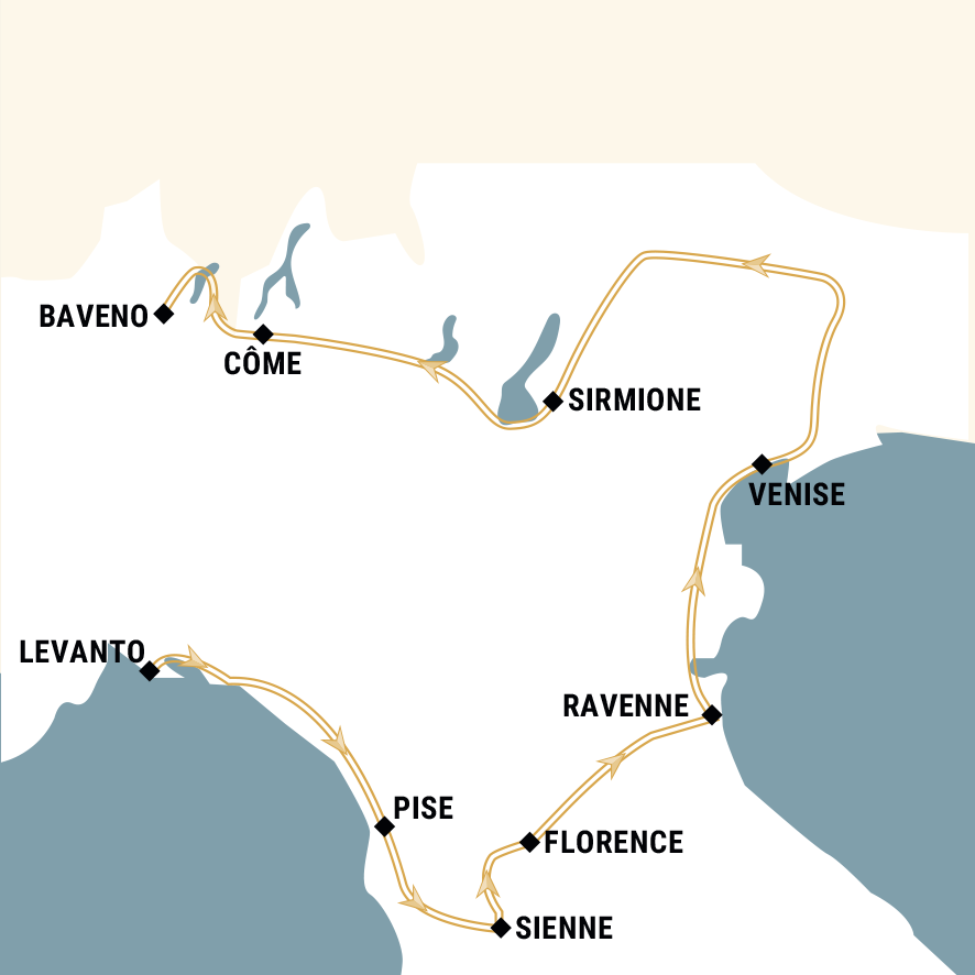 Voyage de 21 jours à travers le nord et le centre de l’Italie, combinant nature, culture et patrimoine. Découverte des Cinque Terre, Pise, Lucques, Sienne, Florence, Ravenne et Venise avec visites guidées et journées libres. Exploration des Dolomites et des lacs italiens : Lac de Garde, Lac d’Iseo, Lac de Côme et Lac Majeur, avec excursions en bateau. Immersion culturelle avec musées, sites historiques, palais, églises, et patrimoine classé à l’UNESCO.