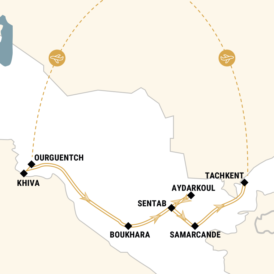 Un voyage de 15 jours à travers les cités mythiques de la Route de la Soie : Khiva, Boukhara, Samarcande et Tachkent. Découverte de médersas, mosquées, minarets et mausolées classés à l’UNESCO, entre traditions artisanales et marchés animés. Immersion culturelle avec nuits en yourte, rencontre des habitants, dîner chez l’habitant et expériences culinaires typiques. Paysages variés : désert du Kizilkoum, lac Aydarkoul, villages de montagne et oasis verdoyants. Un circuit complet alliant histoire, culture et authenticité, pour un voyage inoubliable au cœur de l’Asie centrale.